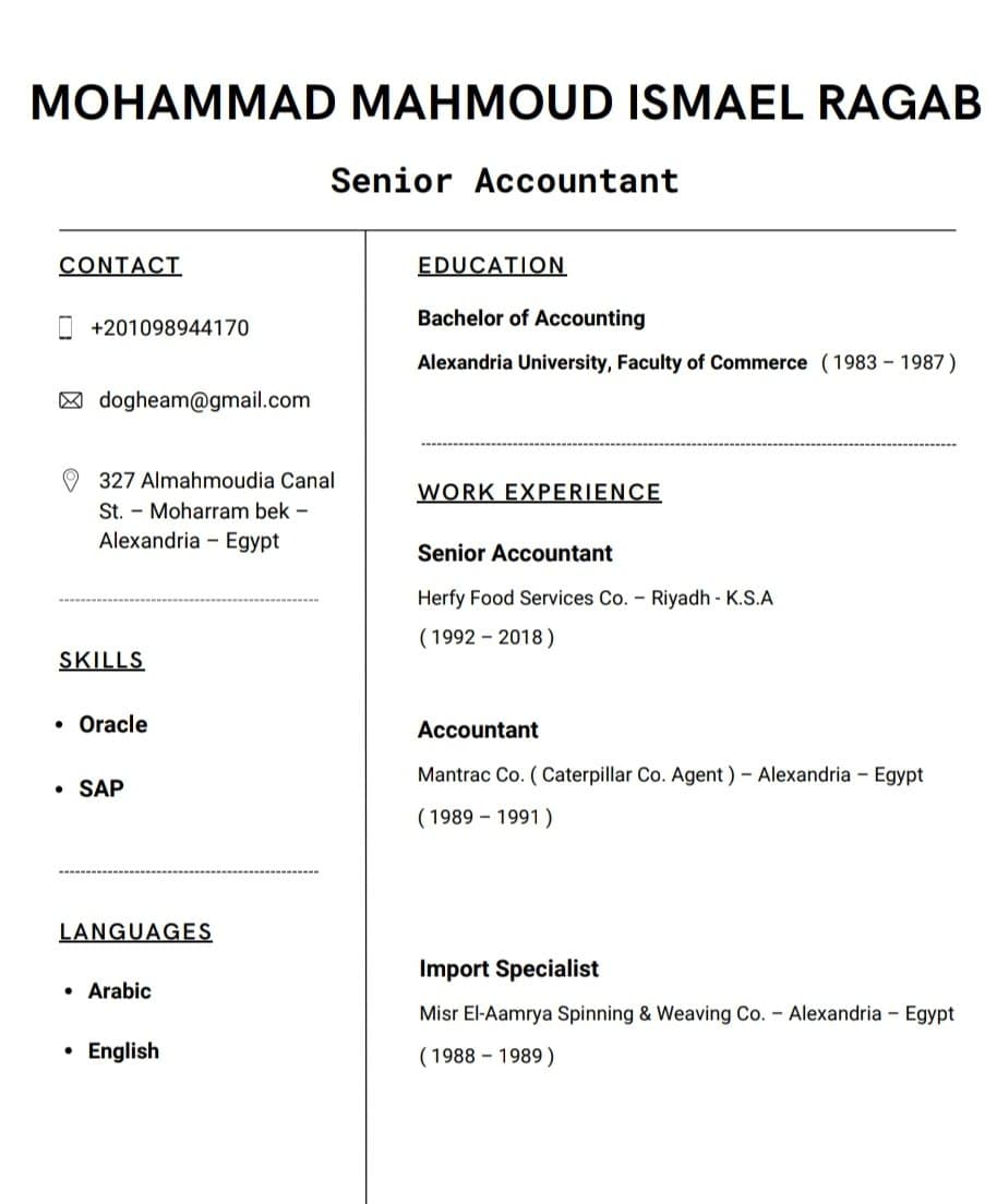محاسب خبرة أكثر من 30 عاماً يبحث عن عمل